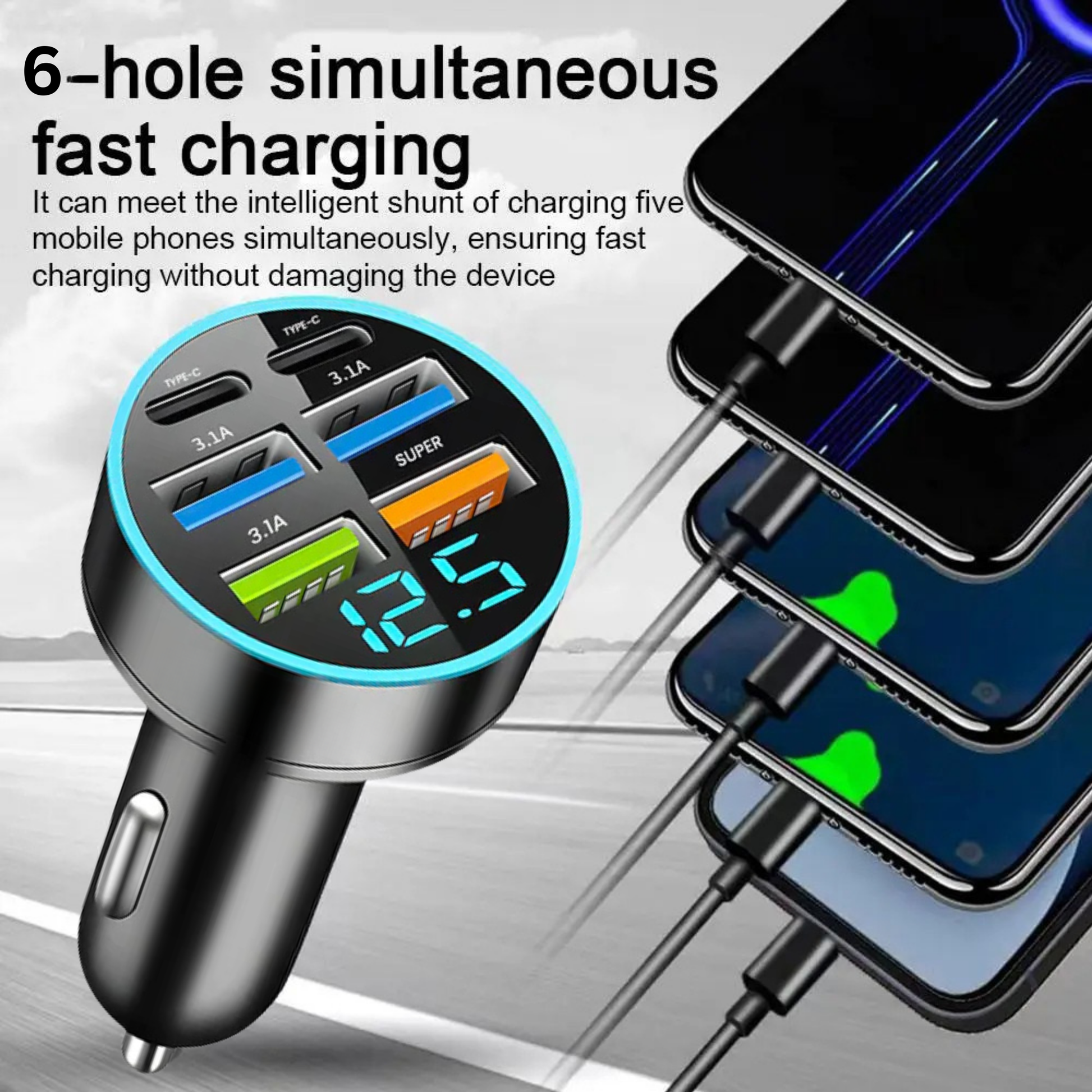 🔋 6 Devices, One Charger – Share the power without compromise thanks to 4 USB + 2 Type-C ports for everyone in the car.